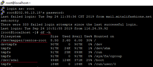 df -h 查看当前的已挂在分区